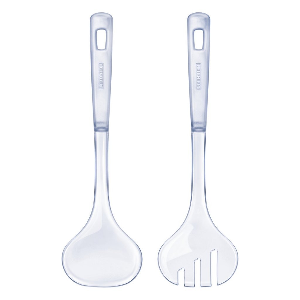 Een heerlijke salade, een mooi gedekte eettafel, en dan… zakt het slabestek weg in de kom. Leifheit heeft de oplossing. Het slabestek van Leifheit is gemaakt van glashelder kunststof en heeft twee handige haakjes, waarmee het bestek netjes aan de rand van de slakom blijft hangen. Het geheim: direct onder de handgreep zitten decente haakjes. Dat maakt altijd netjes en stijlvol serveren mogelijk, ook bij een salade in een hoge kom. Het design is bijzonder aantrekkelijk. De moderne transparante look past perfect bij iedere slakom en is ideaal voor gebruik aan tafel. Bovendien is de stevig en ergonomisch vervaardigde kunststof ook geschikt voor dagelijks gebruik. Beide delen zijn voorzien van een ophangoog en kunnen plaatsbesparend aan een ophangrail worden opgeborgen. Van vaatwasserbestendig materiaal.