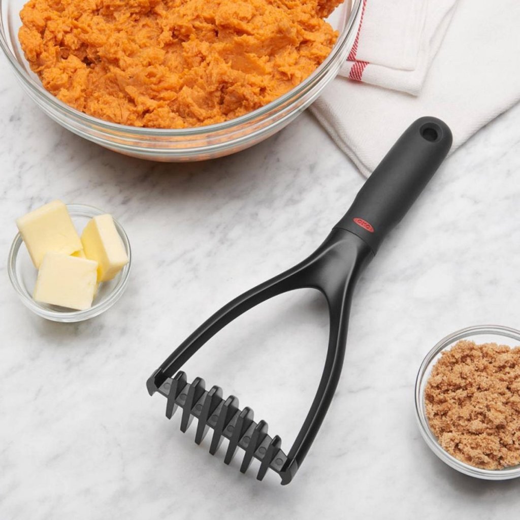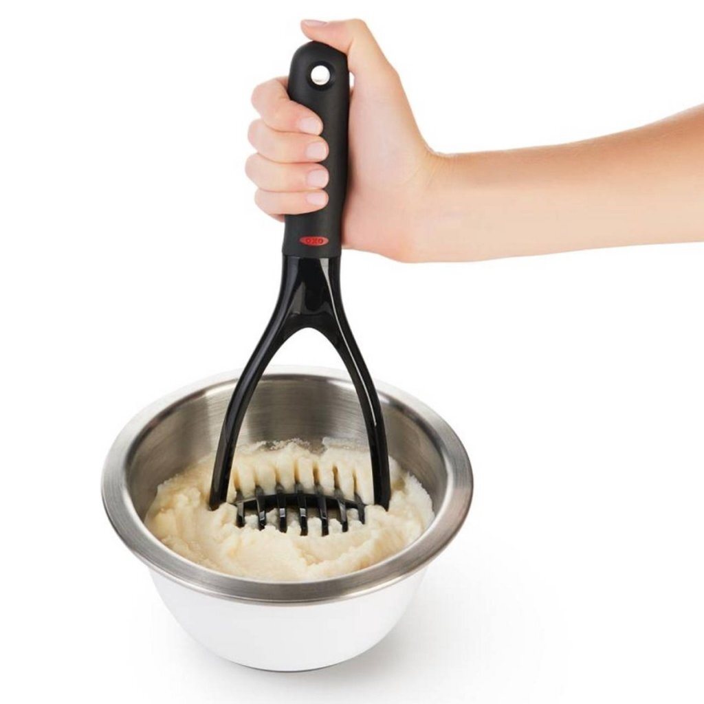 Dankzij de ovale vorm van de stamper, stamp je eenvoudig tot langs de rand van de pan. De zachte, comfortabele greep absorbeert de druk tijdens het stampen en is anti-slip, zelfs wanneer je handen nat zijn. De greep is bovendien voorzien van een ophangoog. De aardappelstamper, gemaakt van stevig nylon, is veilig voor pannen met een anti-aanbaklaag en hittebestendig tot 200 graden celcius. Na gebruik mag de aardappelstamper in de vaatwasmachine.