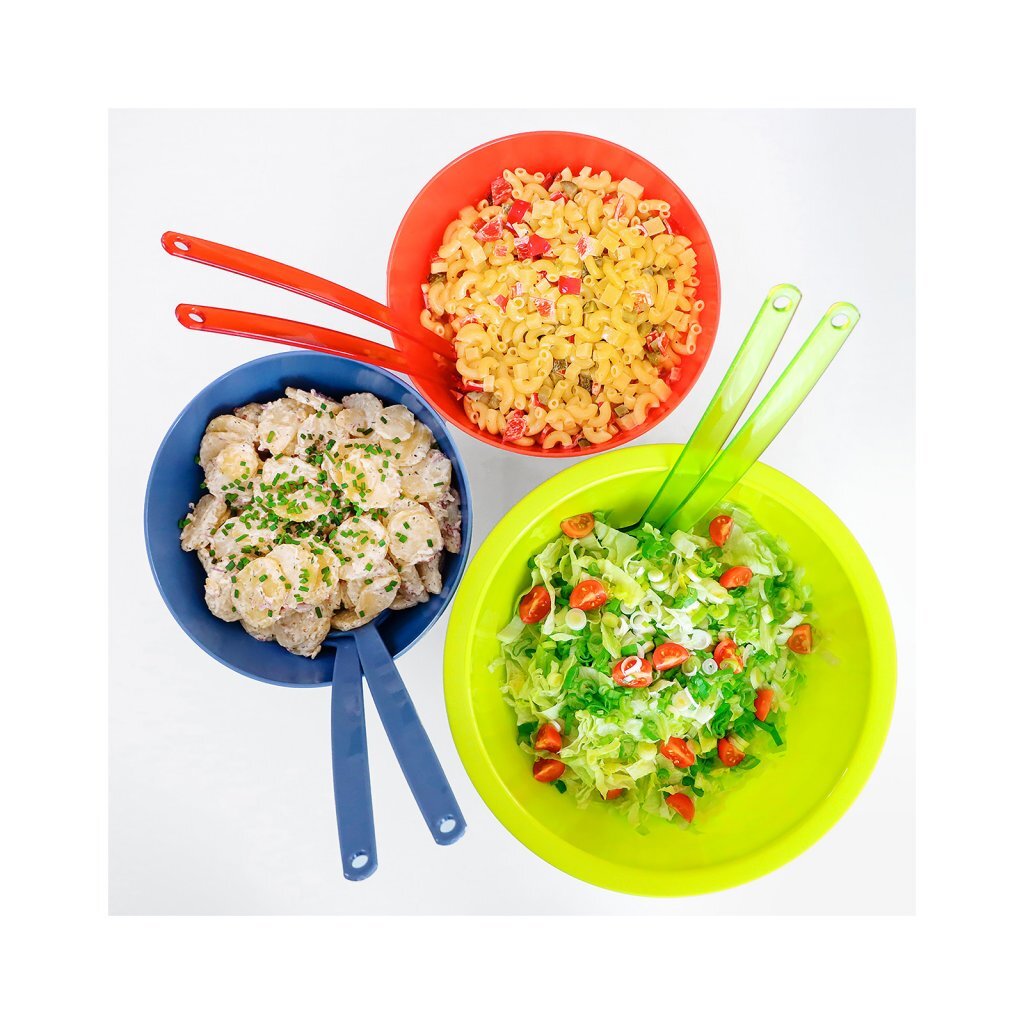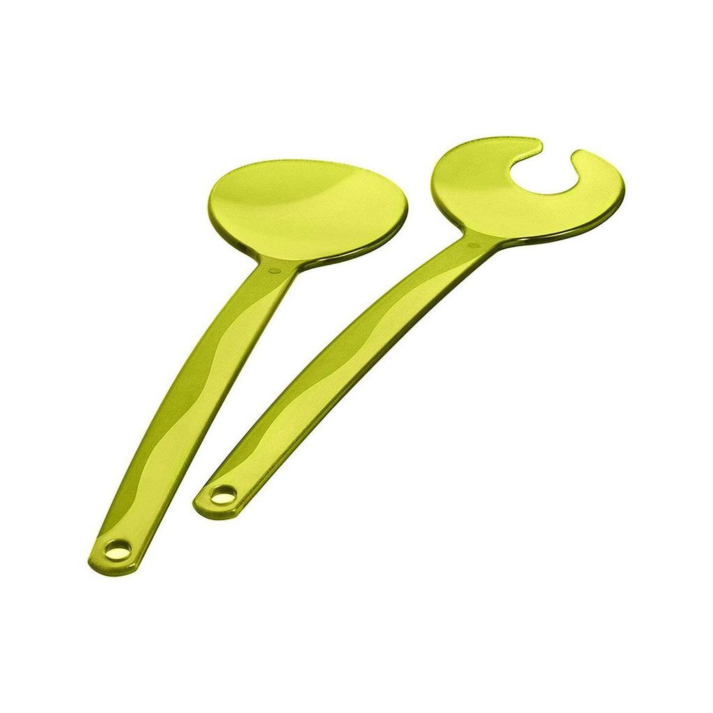 Ideaal voor het mengen en serveren van deze gezonde maaltijd. Of het nu sla, witlof of rucola is – de grote lepels zijn geschikt voor bladeren van elke vorm en grootte. Natuurlijk kunnen ook tomaten-, komkommer- of pastasalades gemakkelijk met de twee lepels worden geserveerd. Om ze op te bergen, kunt u de saladebestek eenvoudig ophangen aan de gaatjes in het handvat – zo heeft u ze altijd bij de hand en raken ze niet zomaar kwijt in winkels of keukenkastjes. Kleur: limoengroen.